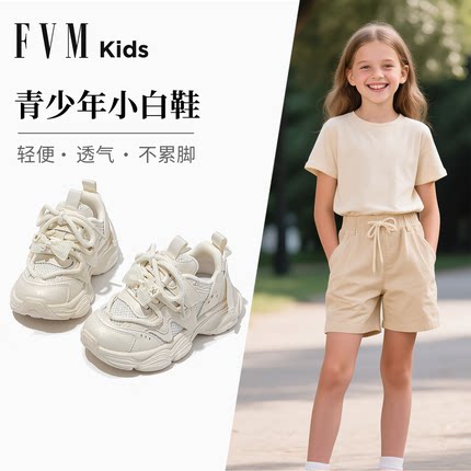 FVM青少年老爹运动网鞋女童鞋2025新款夏季女款小白网面透气轻便