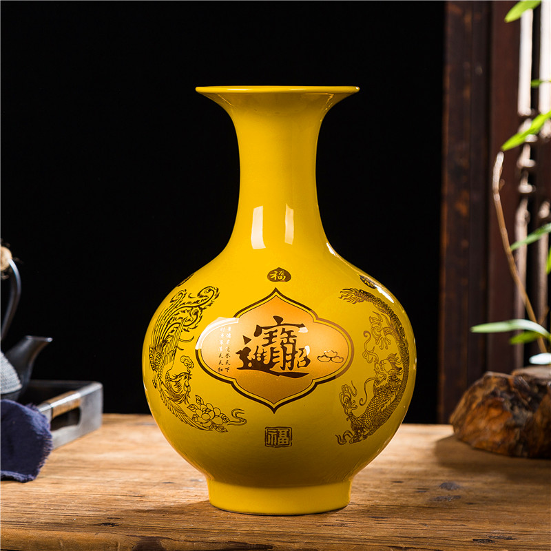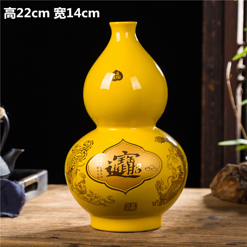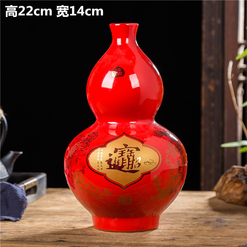 现代新中式客厅家居装饰品创意陶瓷中国红葫芦花瓶书房博古架摆件