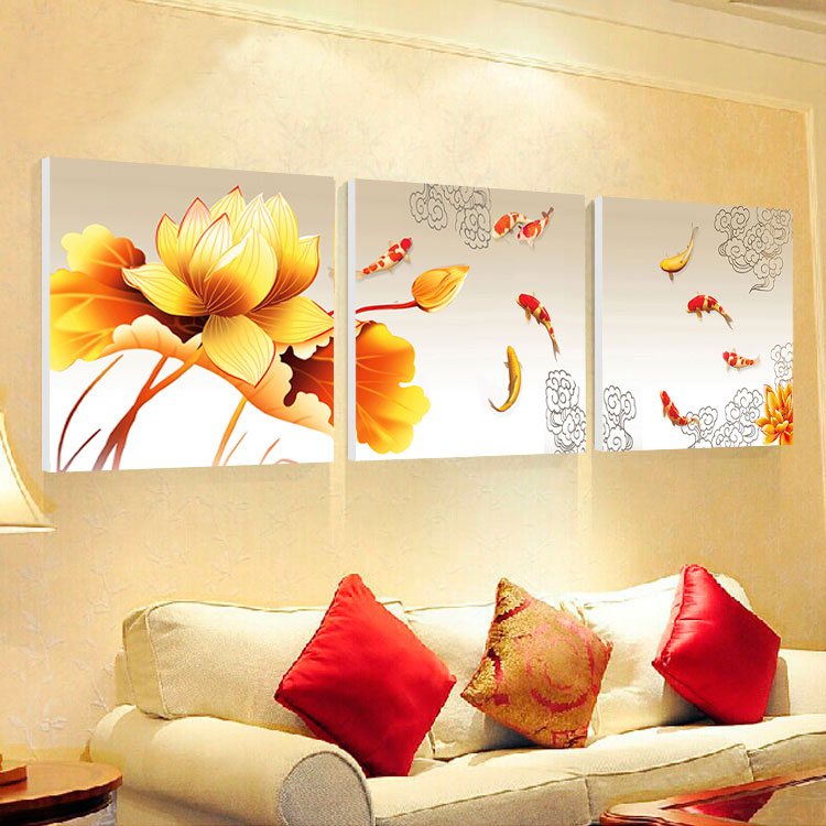 装饰画客厅现代简约壁画水晶无框画挂画卧室餐厅三联画荷花福字画