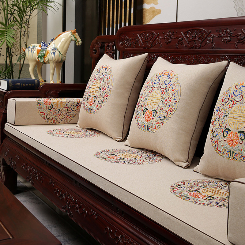 新中式客厅抱枕红木沙发飘窗床头