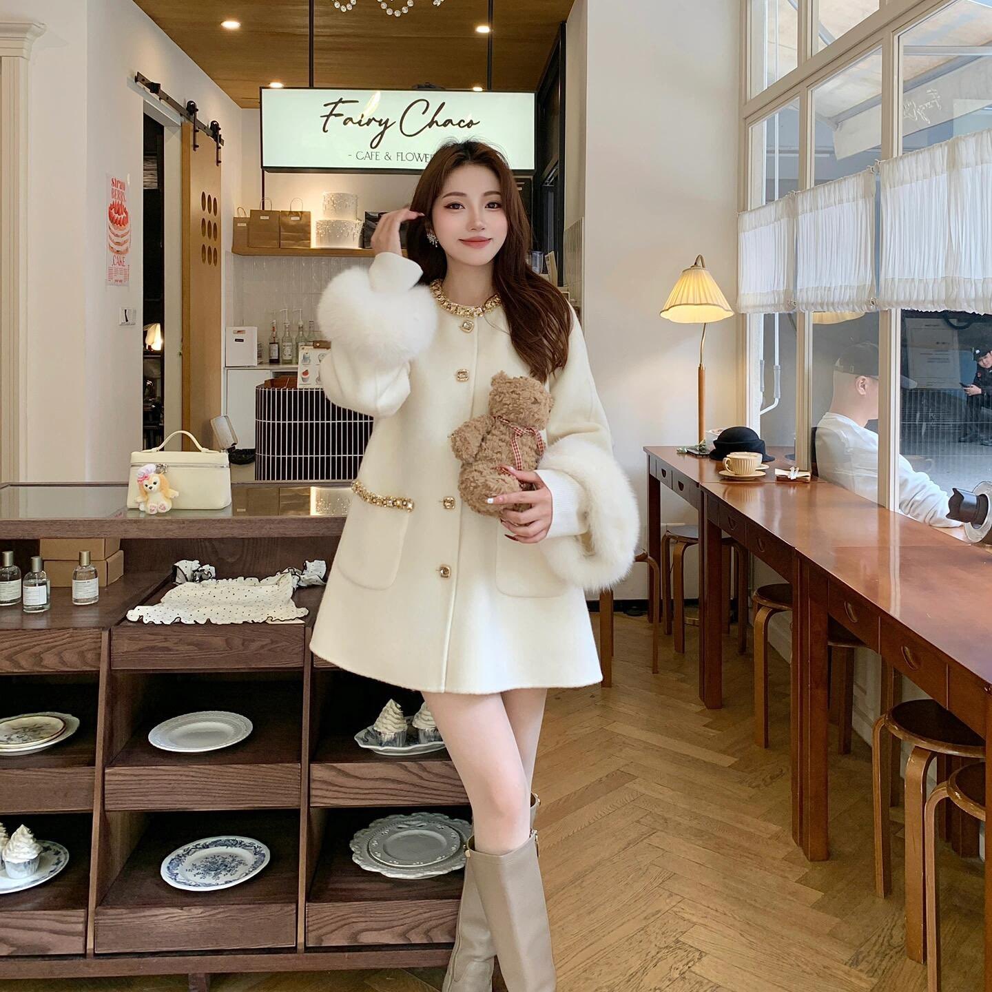 韩系钉珠双面羊毛大衣