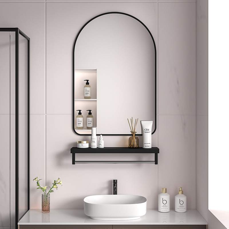 北欧拱形免打孔高清防爆浴室镜卫生间洗手台壁挂式自粘化妆镜