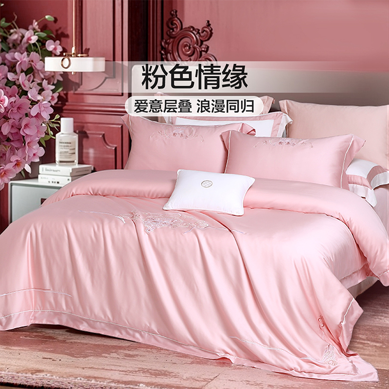 富安娜长绒棉婚庆四件套结婚加厚陪嫁喜庆高支床单婚嫁被套套件