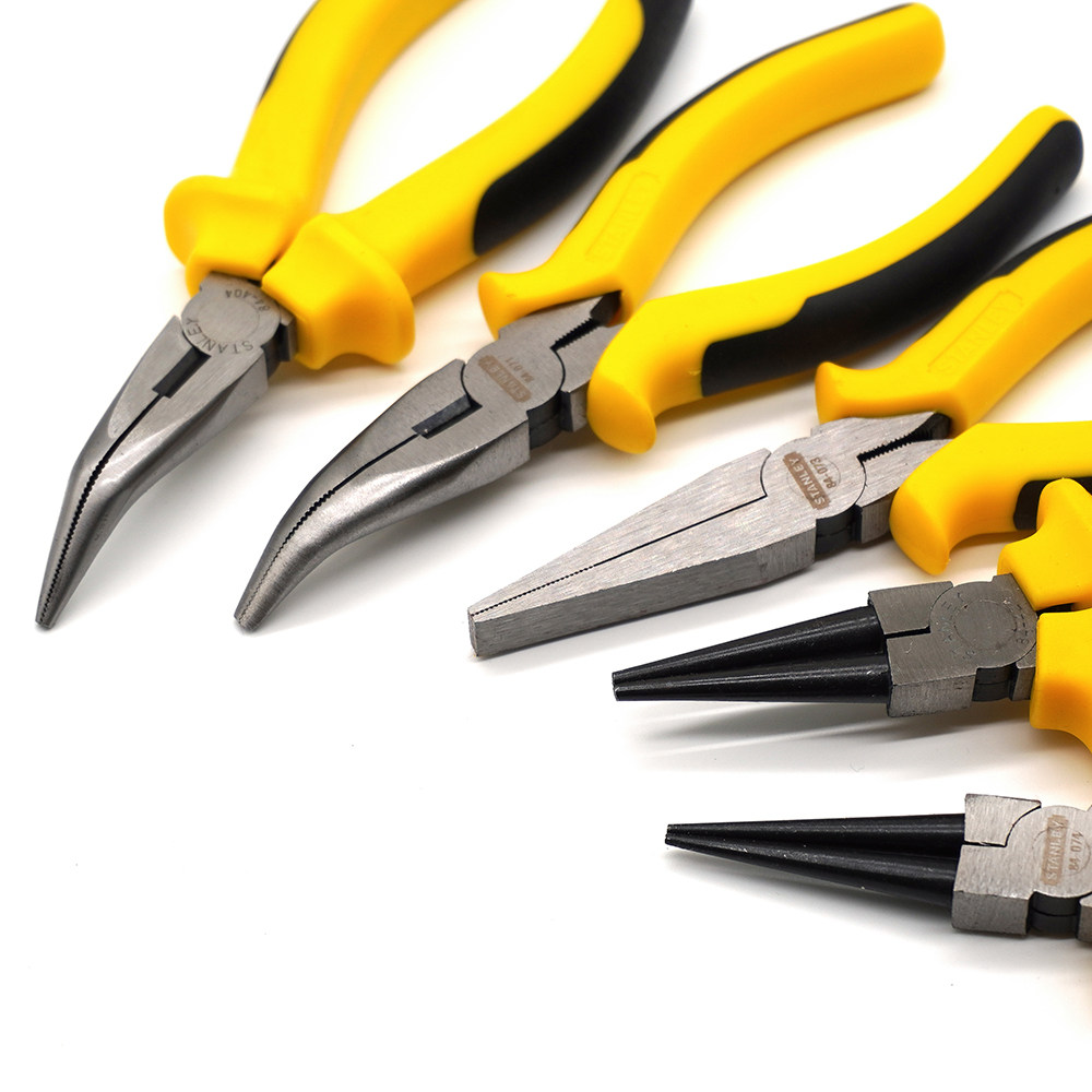 史丹利弯嘴钳6寸8寸弯头尖嘴钳圆嘴钳子钢丝钳扁嘴钳子顶切钳子