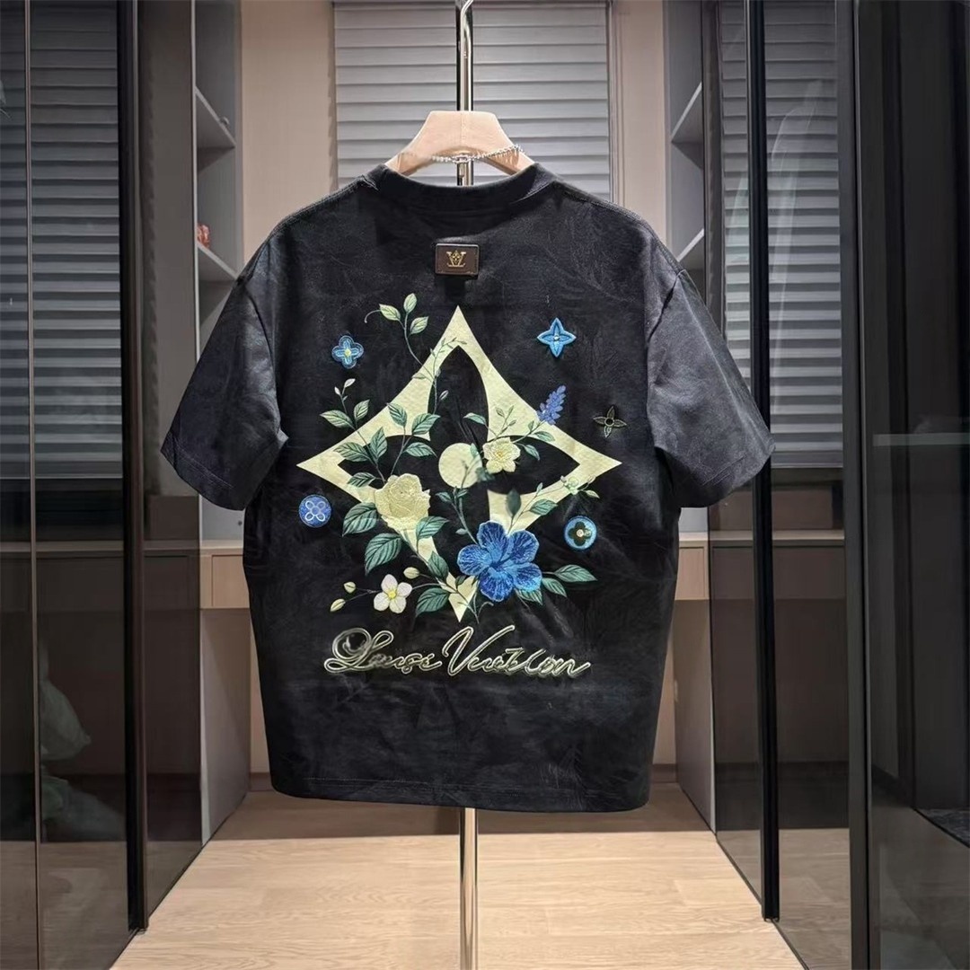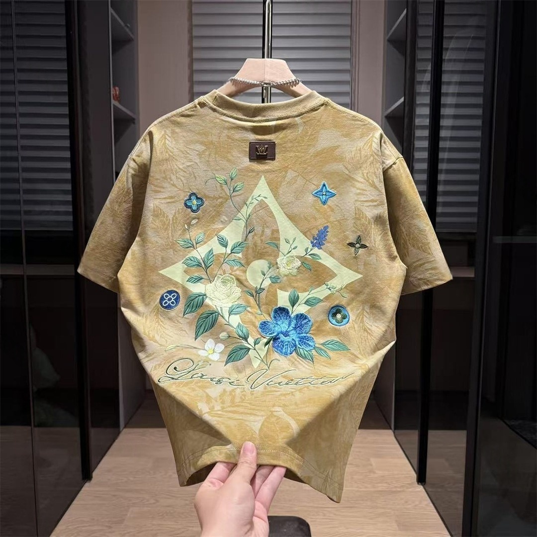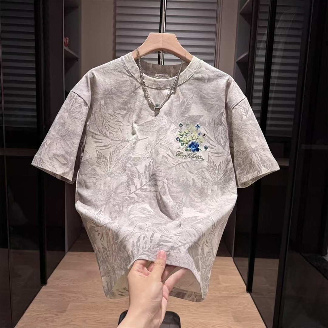 潮牌花卉刺绣设计休闲短袖T恤男025夏季新款时尚百搭痞帅半袖上衣