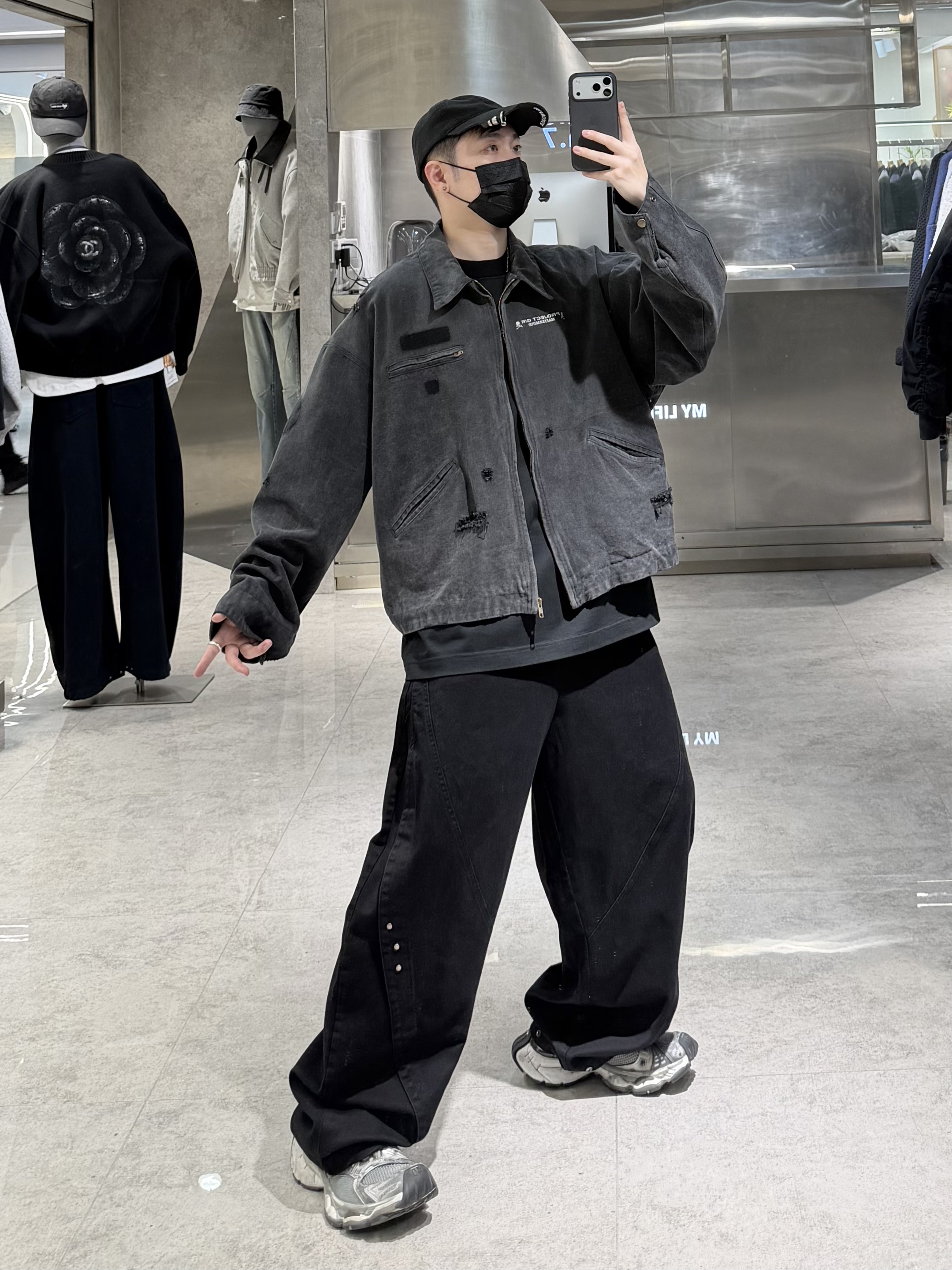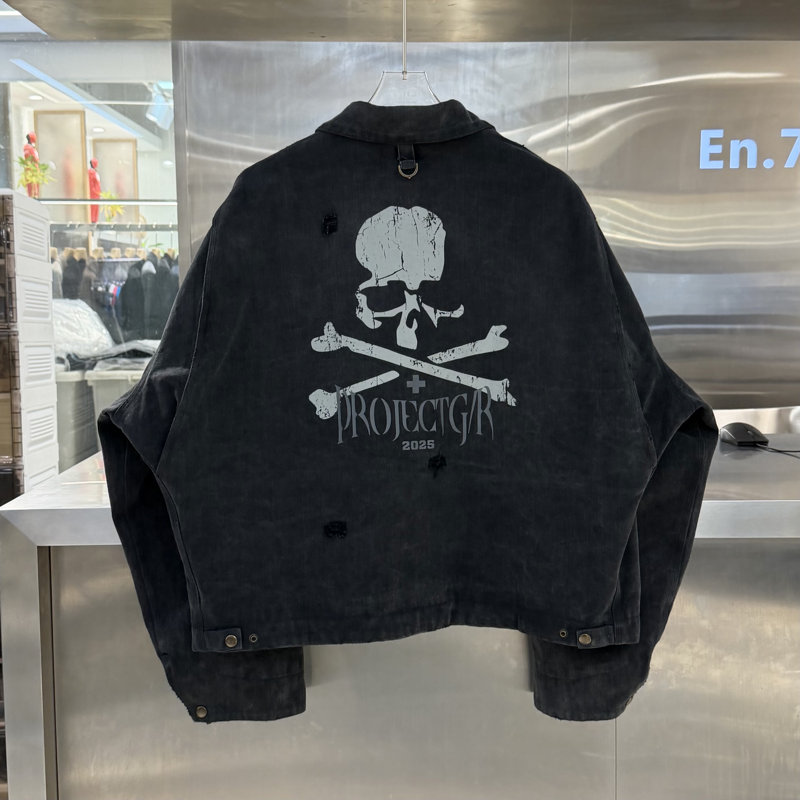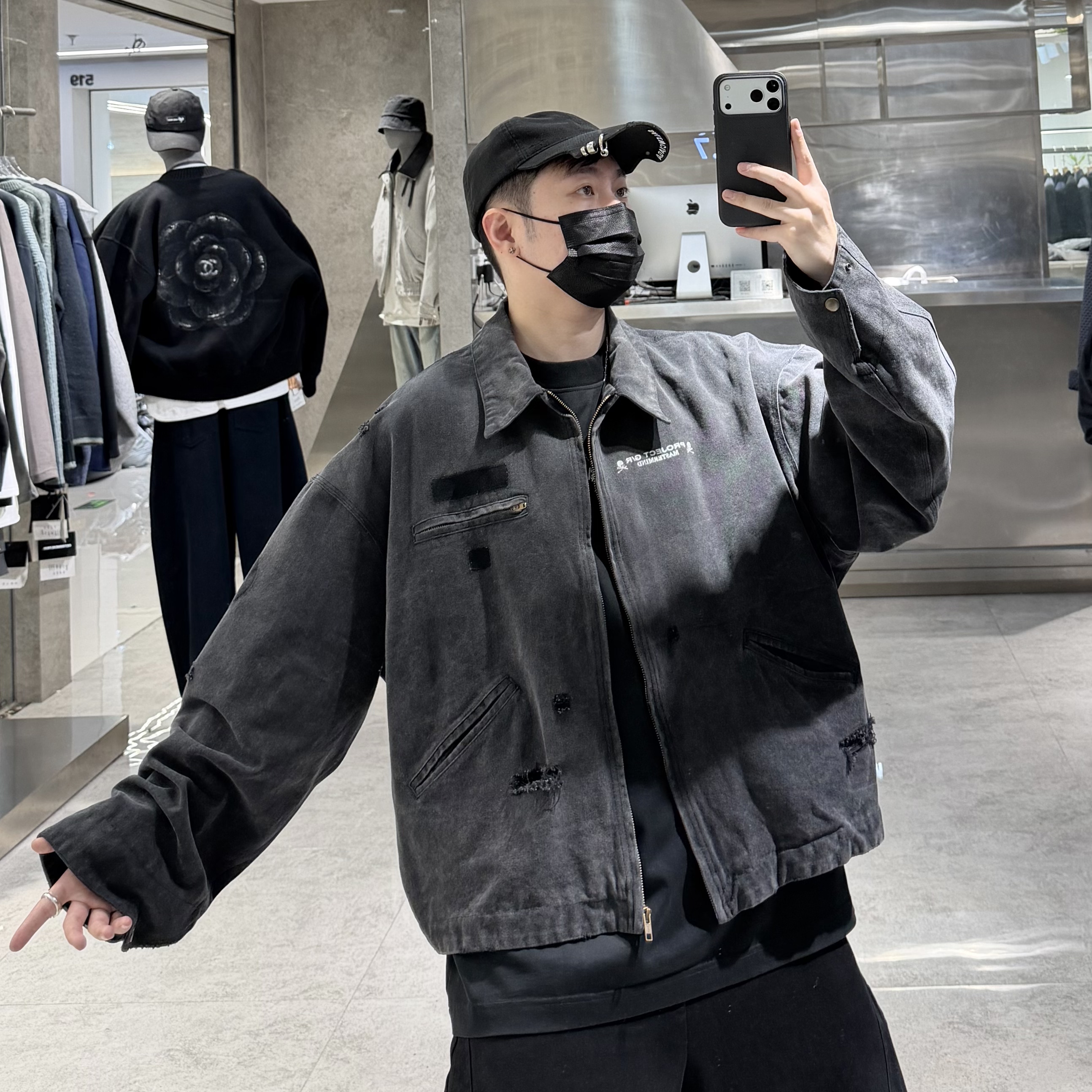 潮牌春季翻领牛仔外套男ins美式复古做旧骷髅头印花宽松青年夹克