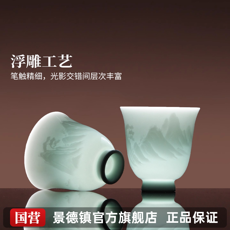 景德镇官方陶瓷中国色影青浮雕主人杯泡茶杯茶具2025新款品茗杯