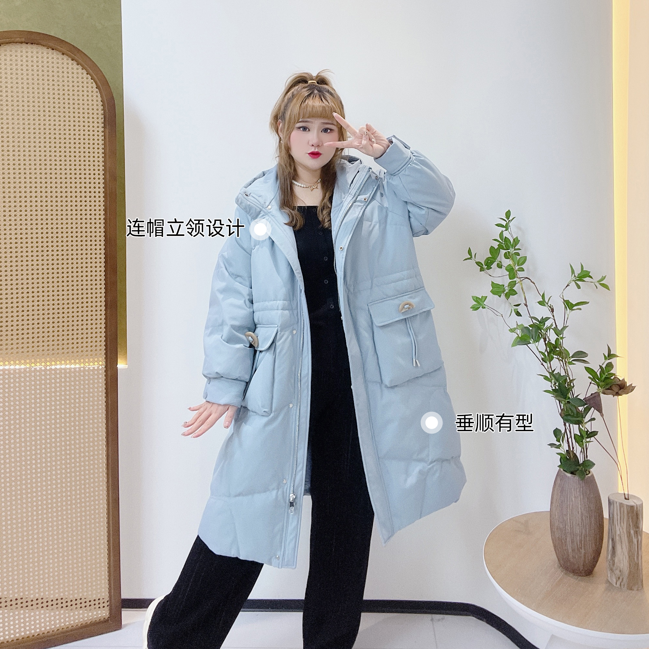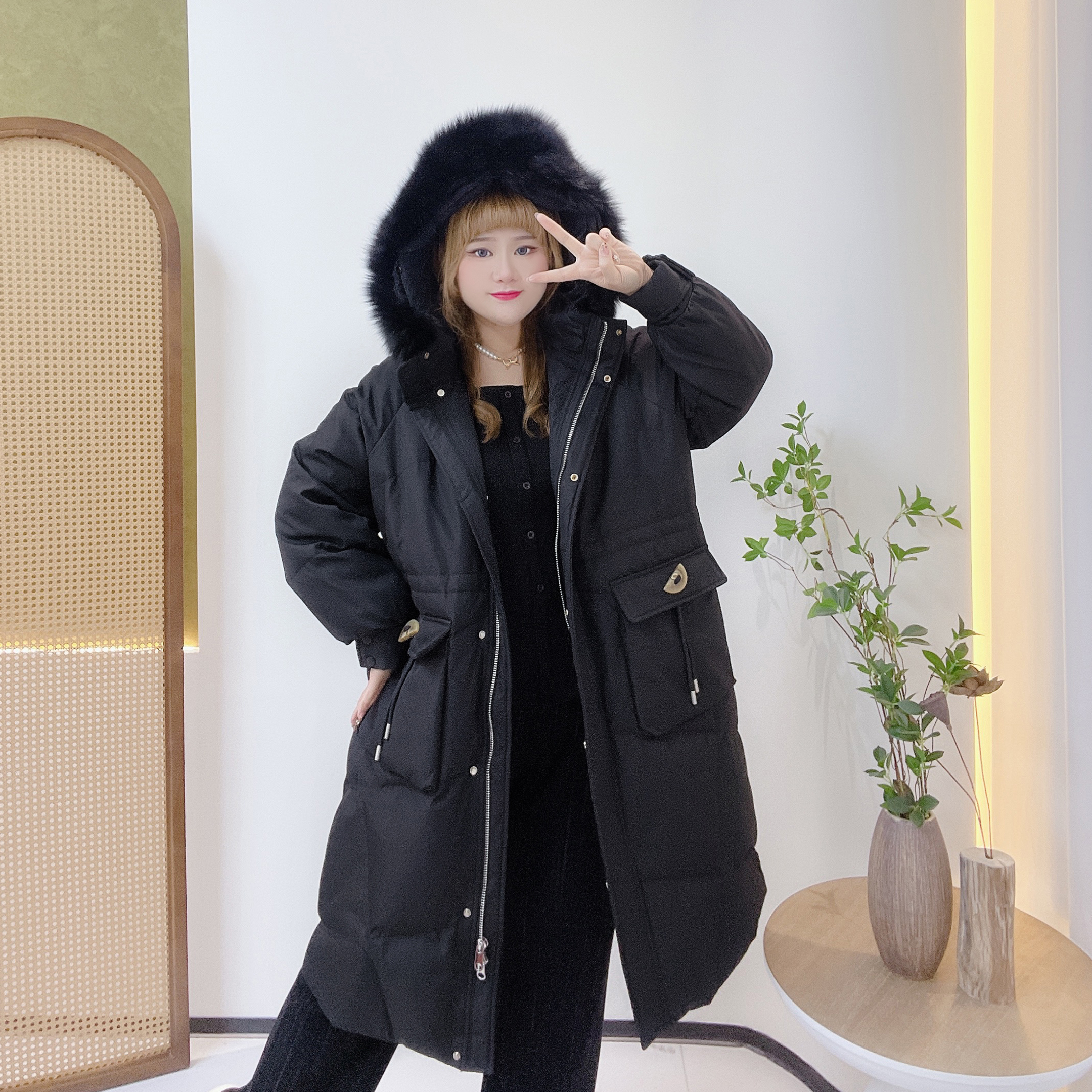 300斤胖莹莹大码羽绒服时尚减龄简约加厚抗寒大毛领连帽长款外套
