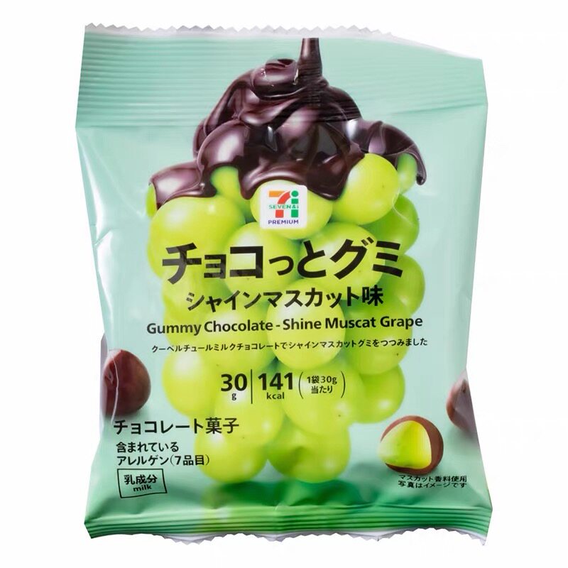 日本进口711便利店青提夹心巧克力草莓葡萄味小包装即食休闲零食