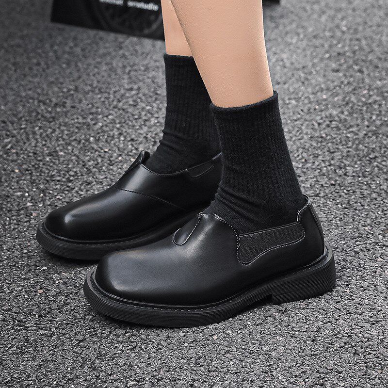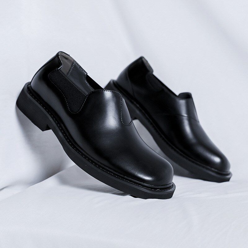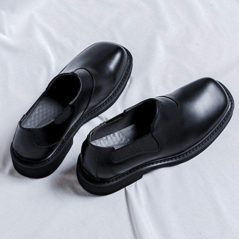 方头皮鞋男英伦风弹力带懒人一脚蹬大头休闲商务小皮鞋68661-R