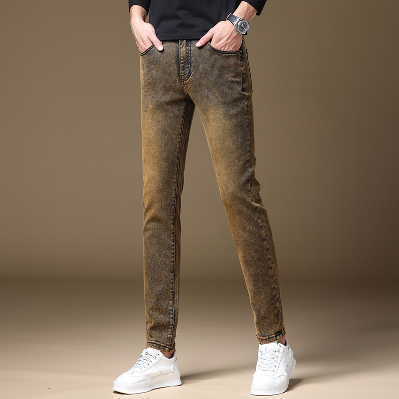 高端潮牌复古欧货牛仔裤男款秋冬季修身小脚裤痞帅炸街百搭长裤子
