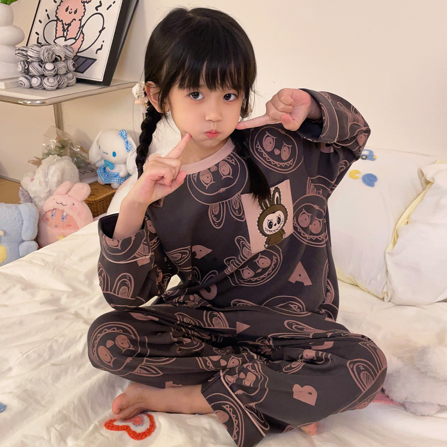 儿童睡衣男童女童春秋季纯棉长袖中大童男女孩卡通小狗家居服套装