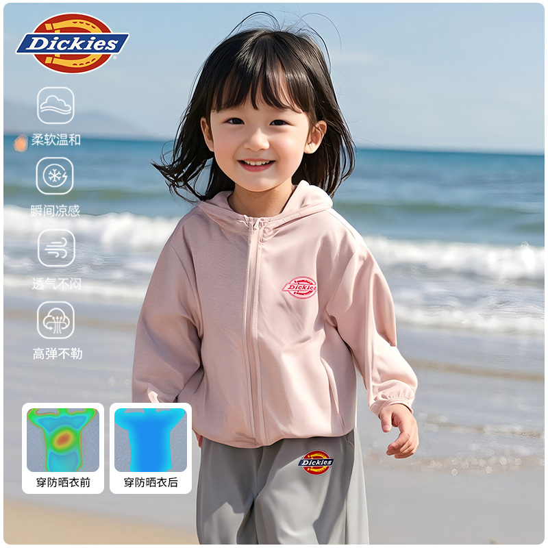 Dickies童装男童外套2025新款儿童防晒衣女童连帽上衣春秋款潮牌A