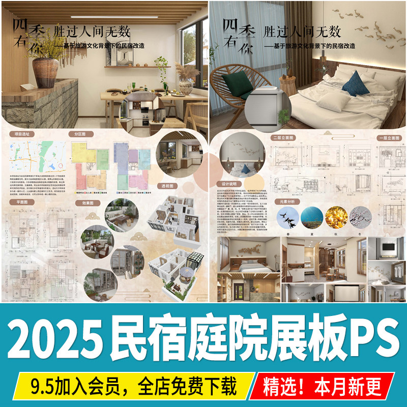 民宿设计建筑乡村室内改造分析图素材PSD排版模板别墅庭院PS展板