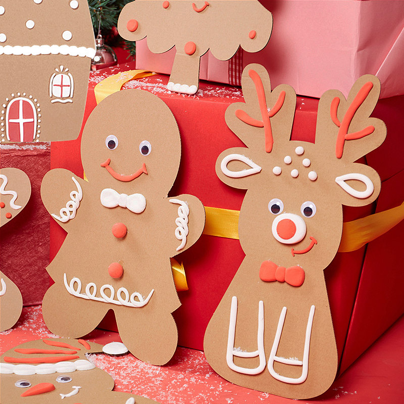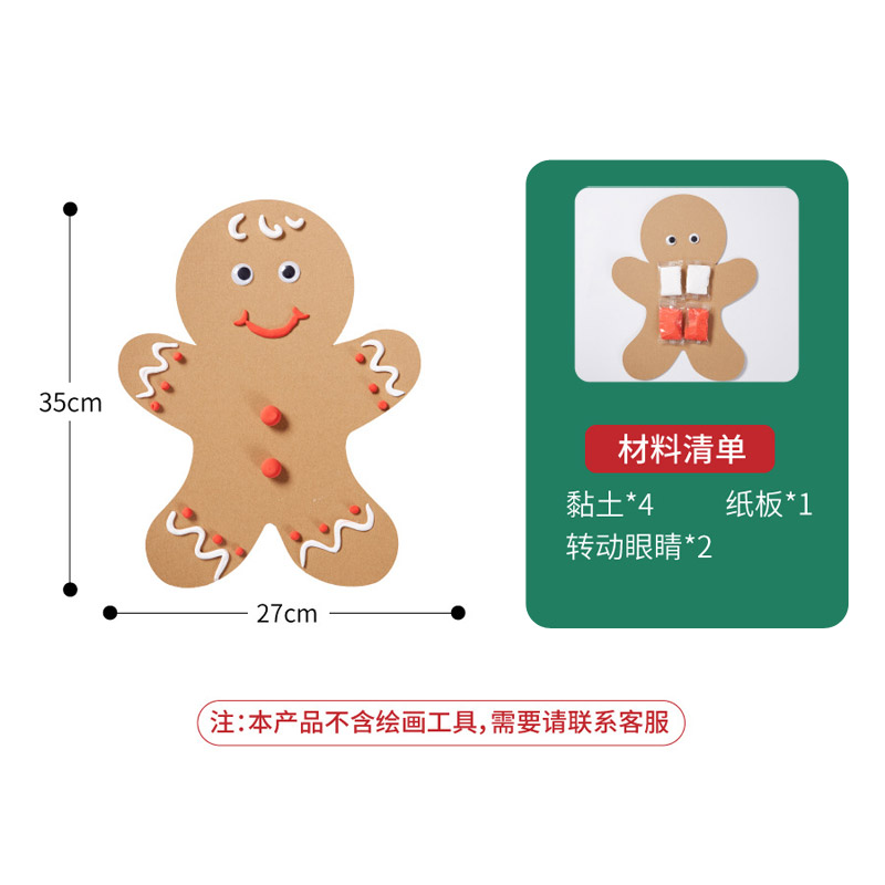 圣诞节儿童自制手工DIY装饰材料包 彩泥制作卡通姜饼人粘土饼干画