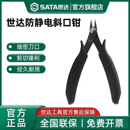 世达防静电手柄斜口钳电工专业弯嘴偏口剪钳工业级强力电子平口钳