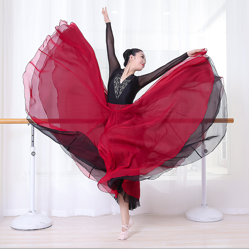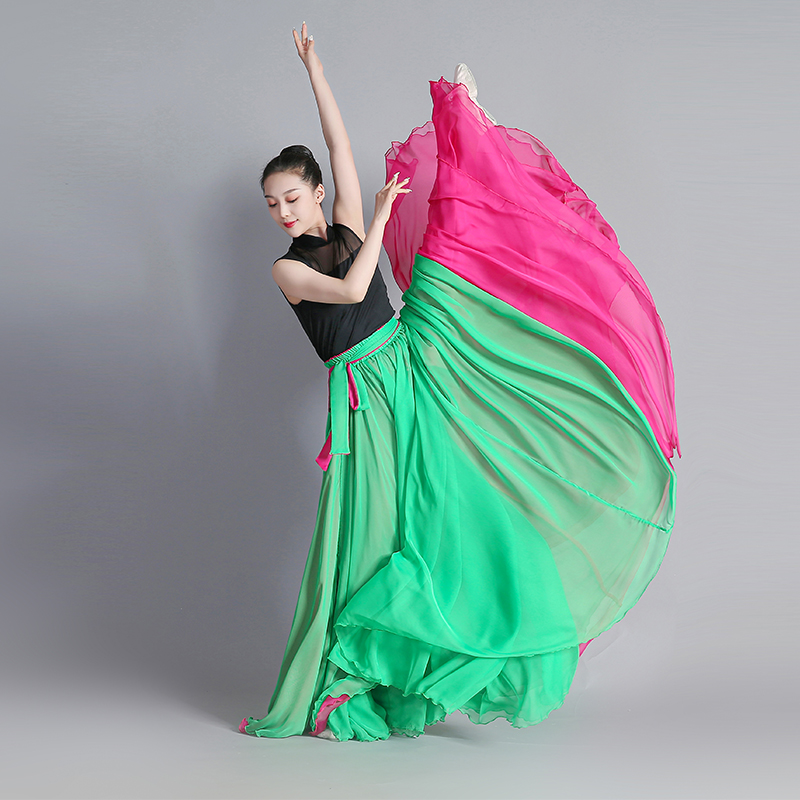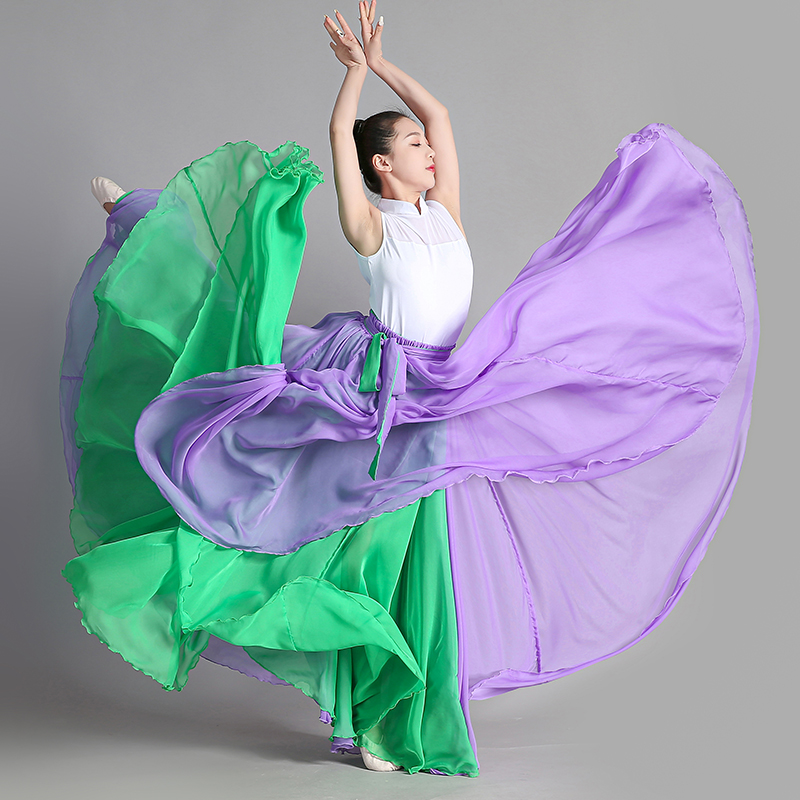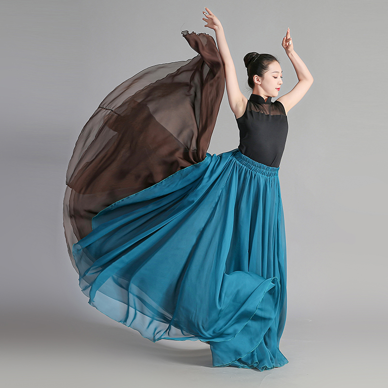 双色古典舞蹈半身裙子女飘逸练功服720度天丝大摆纱裙表演服长裙
