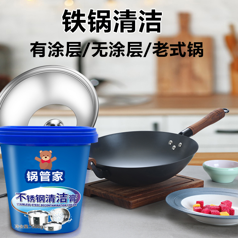 铁锅内烧焦除垢清洁剂油垢炒锅锅底炒菜锅清洗黑垢神器锅里清洁膏