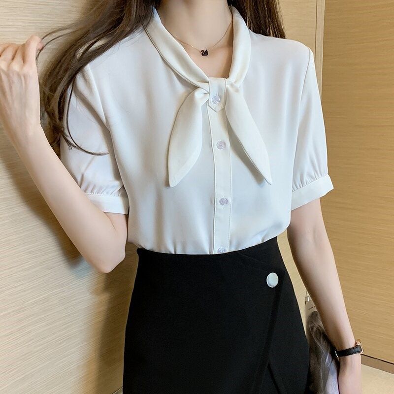 时尚气质短袖雪纺衬衫女夏装2024年夏季新款女士衬衣洋气薄款上衣