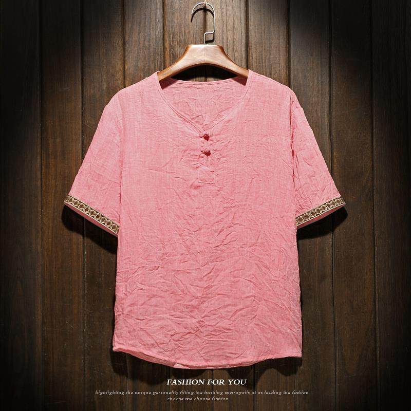宽松盘扣短袖棉麻亚麻大码