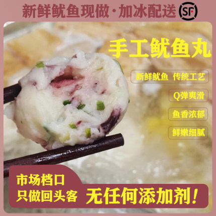 潮汕鱿鱼丸正宗传统手打手工鱼丸鱼滑鱼肉火锅食材配菜烧烤章鱼丸