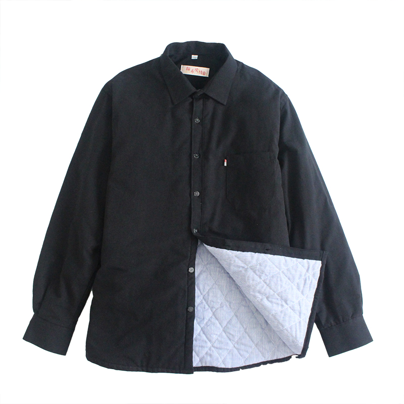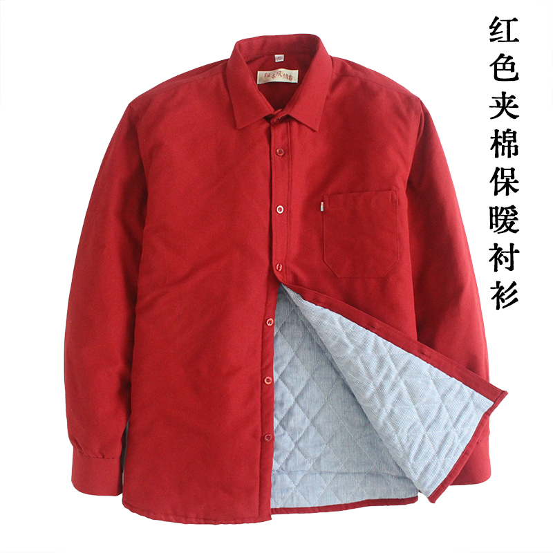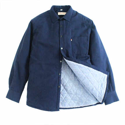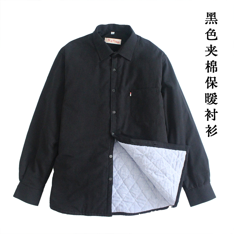 纯棉保暖衬衫男长袖纯色夹棉加厚衬衣青年藏青中老年丝绵小棉袄冬
