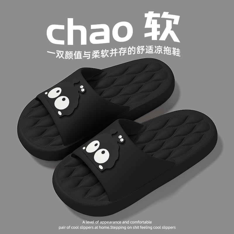 黑色煤球拖鞋女夏季外穿2025新款室内家居浴室防滑厚底凉拖鞋女士