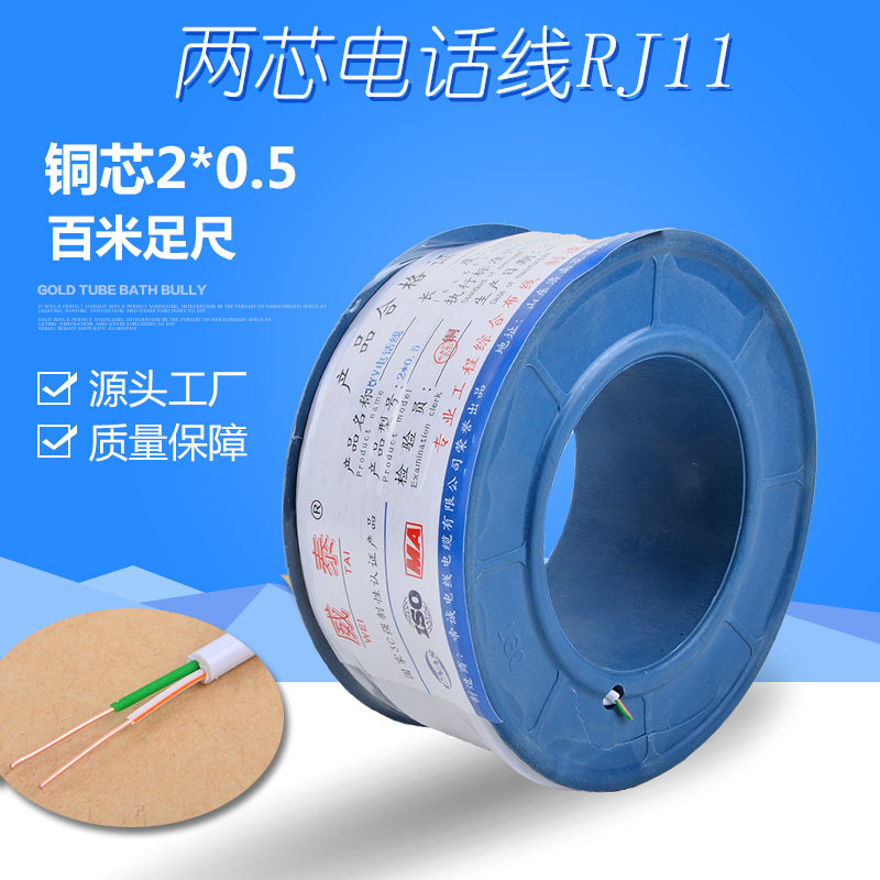 两芯电话线芯室内电话线RJ通信线缆HYV*0.5无氧铜足0米