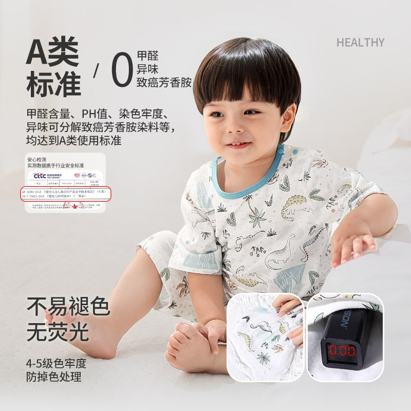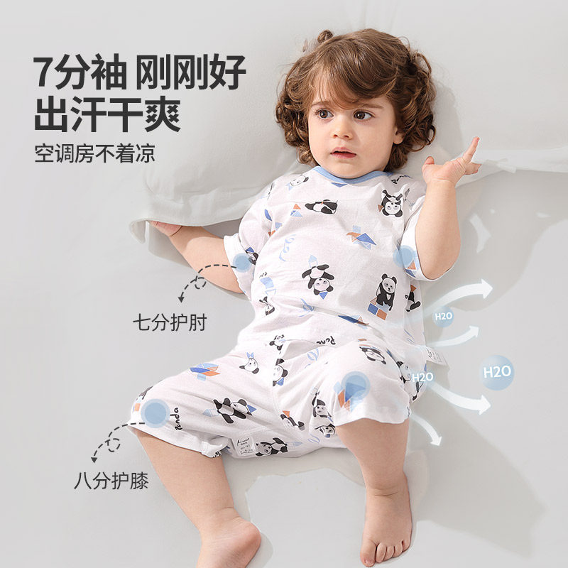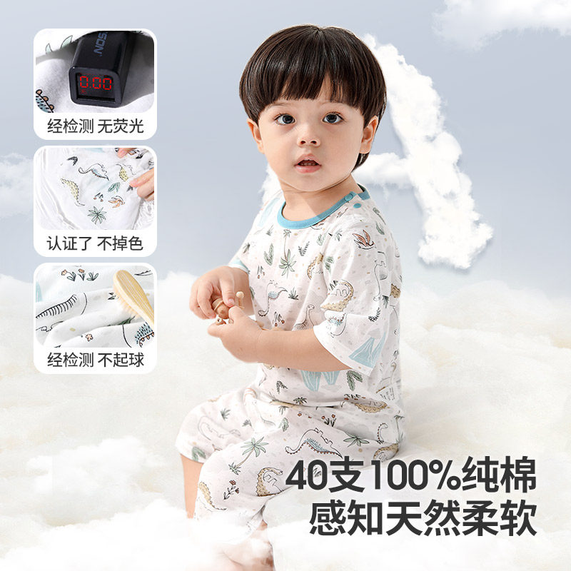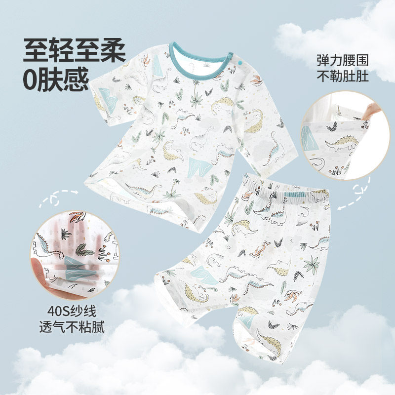 儿童睡衣宝宝空调服夏季薄款男童女七分袖套装纯棉家居服小孩夏装