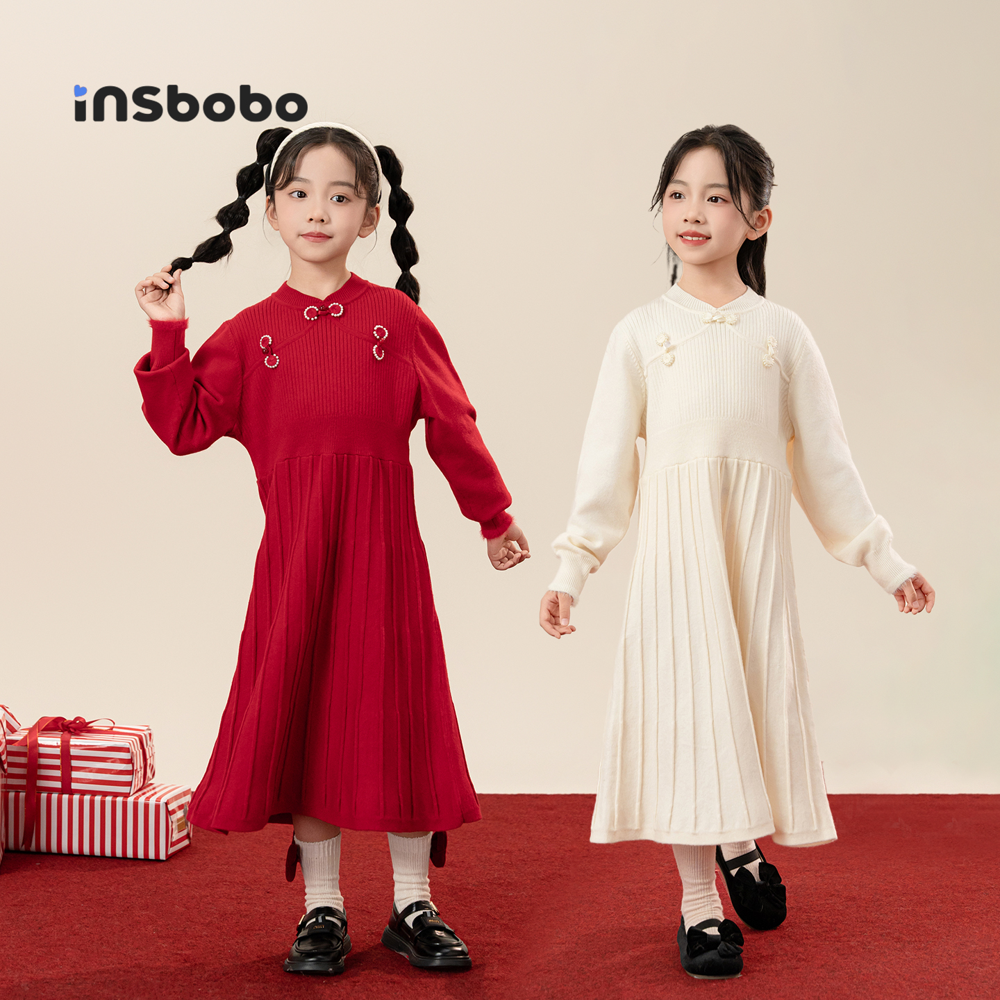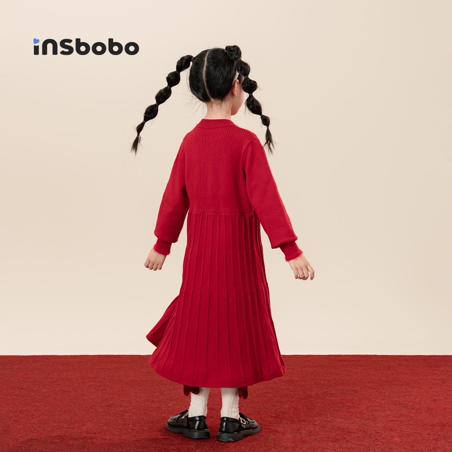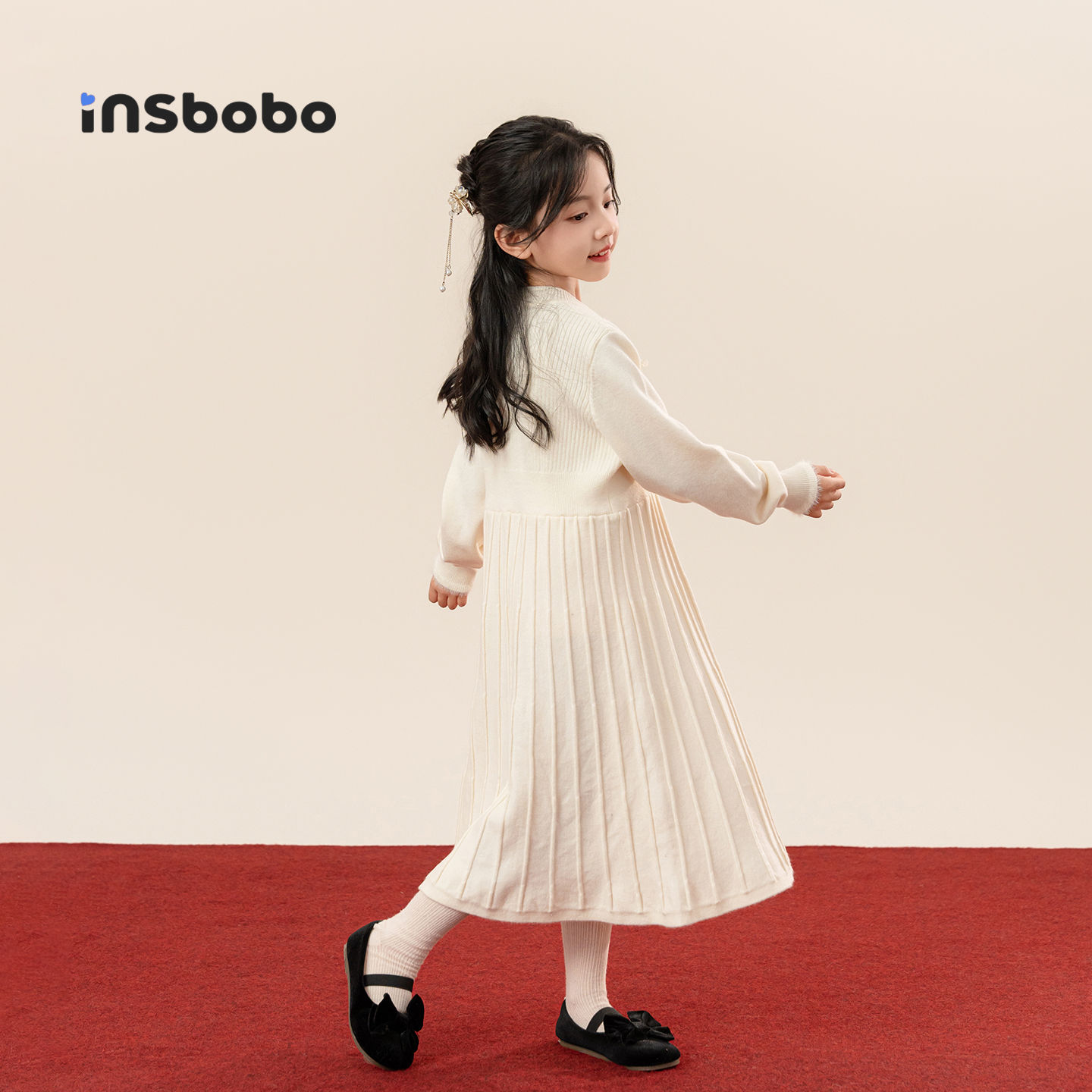 INSbobo童装女童连衣裙秋冬新款毛衣裙子女孩冬裙洋气长裙中大童