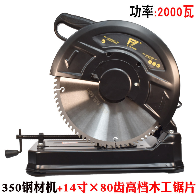 博海350钢材切割机14寸 家用切柴火机木工角铁金属切割机台式电锯