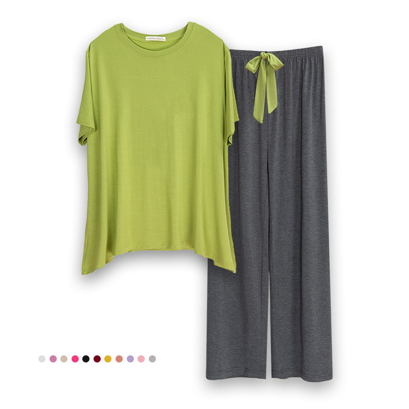 春夏女睡衣莫代尔套装薄短袖长裤弹力运动宽松休闲月子家居服外穿