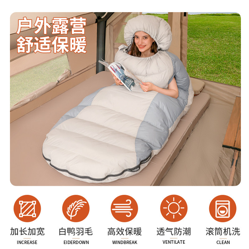 可伸手白鸭羽毛睡袋户外成人秋冬季露营大人加大鸭毛羽绒零下20度