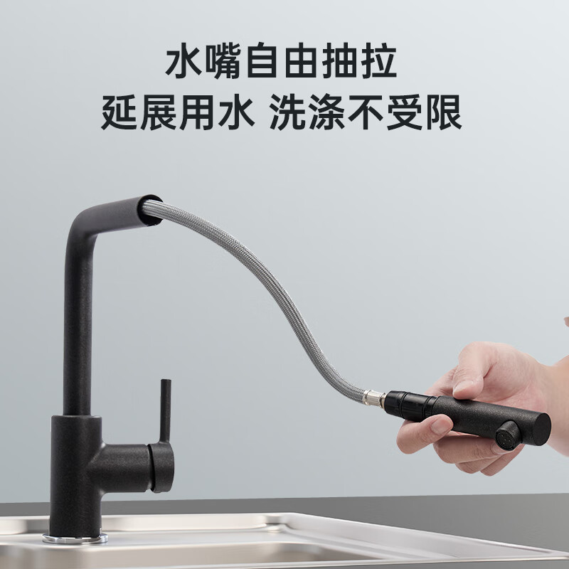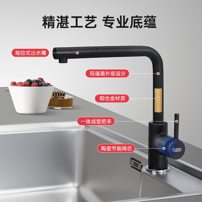 FRANKE弗兰卡单柄平抛抽拉冷热水龙头玛瑙黑铜合金厨房龙头CT935G