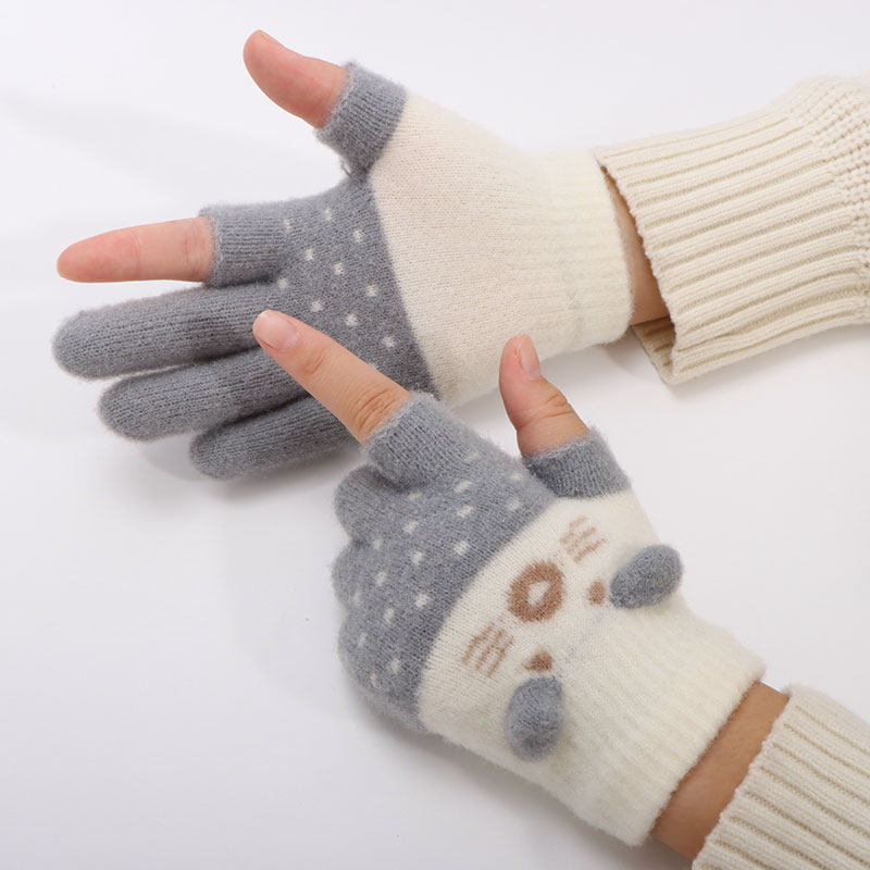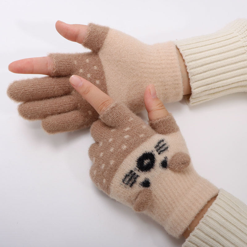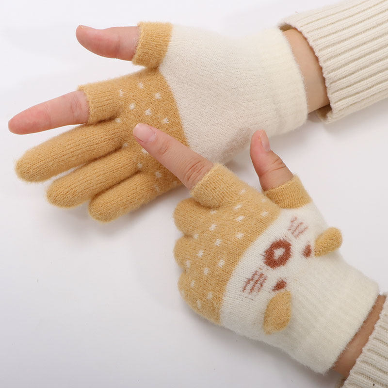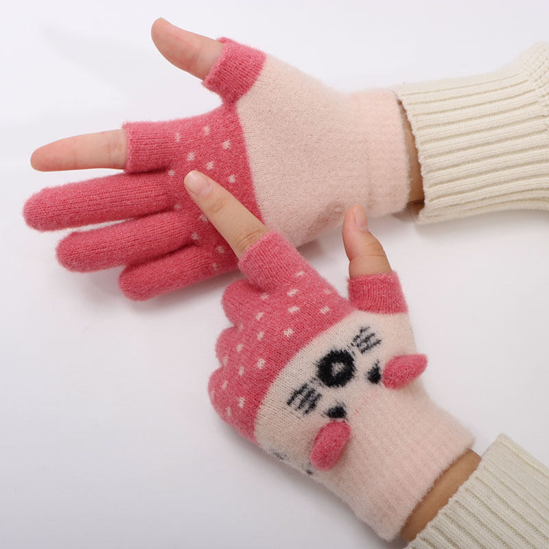 儿童手套漏二指秋冬季男女童小孩防寒保暖可爱卡通学生写字