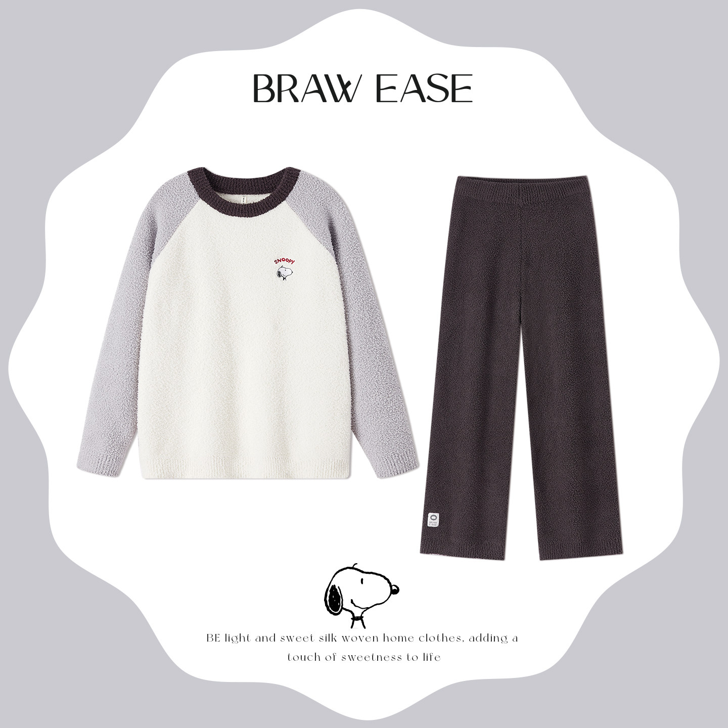 史努比睡衣半边绒秋冬女款长袖加绒情侣冬季家居服冬天珊瑚绒男厚
