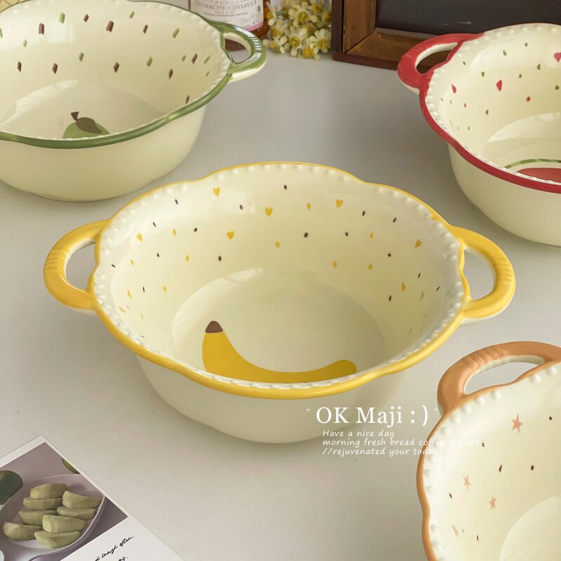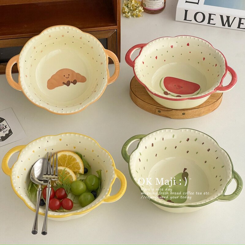 漂亮高颜值新款双耳陶瓷沙拉碗