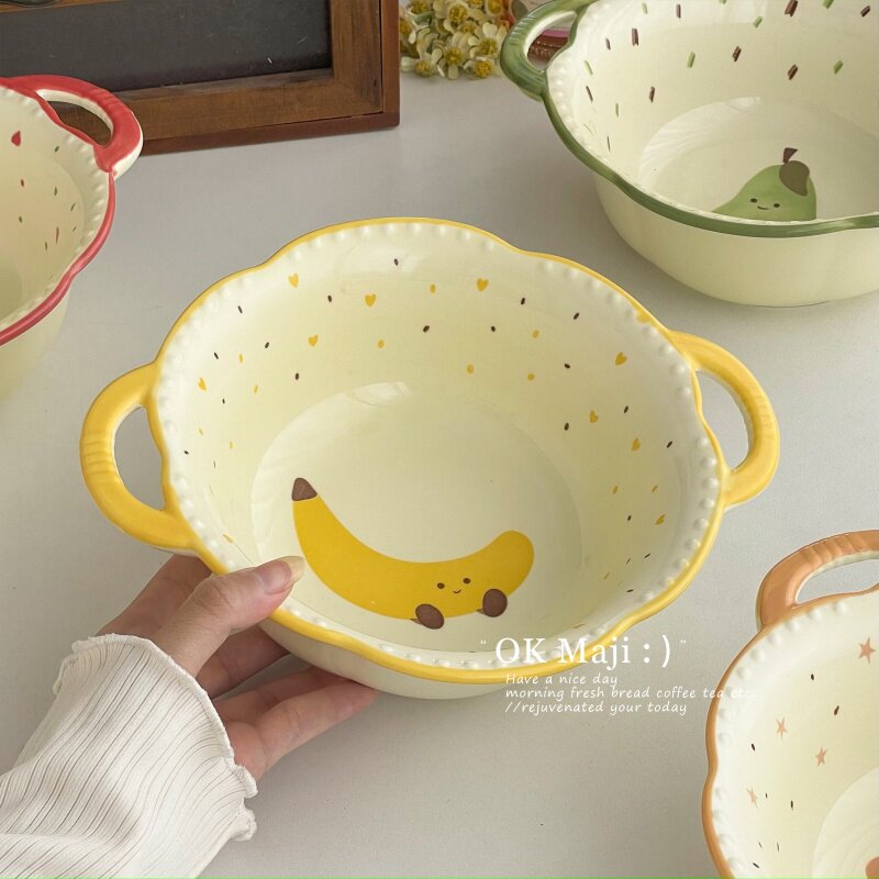 漂亮酸奶碗陶瓷新款饭碗高颜值燕麦早餐碗汤碗双耳水果蔬菜沙拉碗