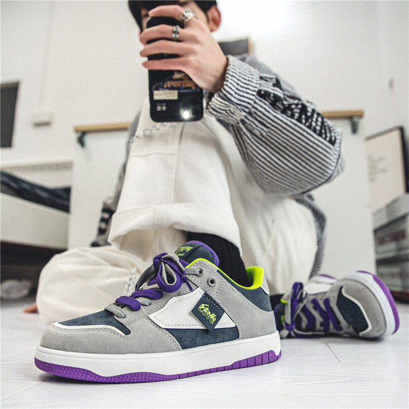 新款复古厚底休闲板鞋男青少年低帮运动男鞋系带学生四季透气潮鞋