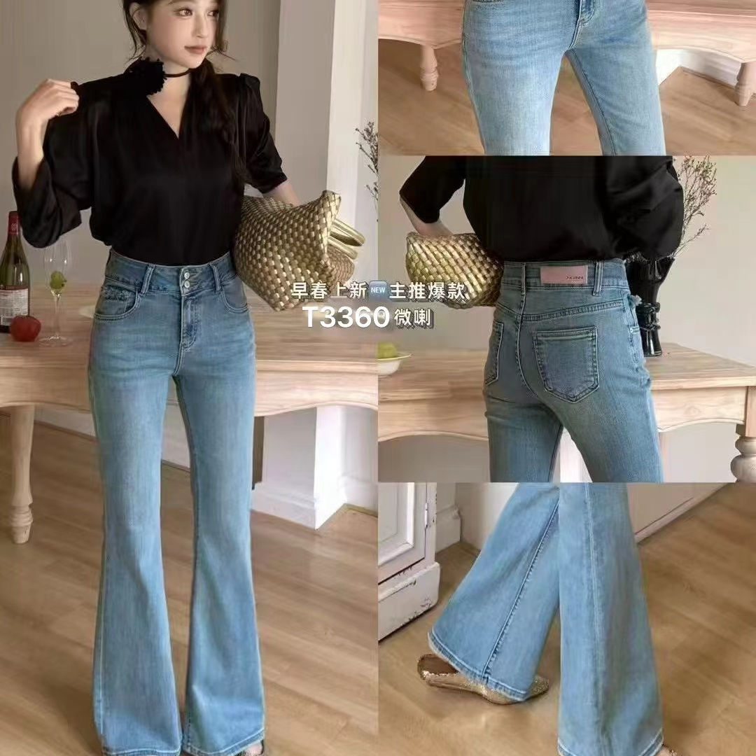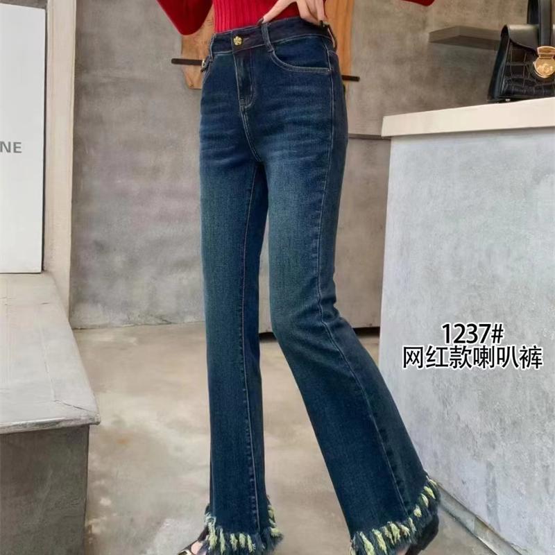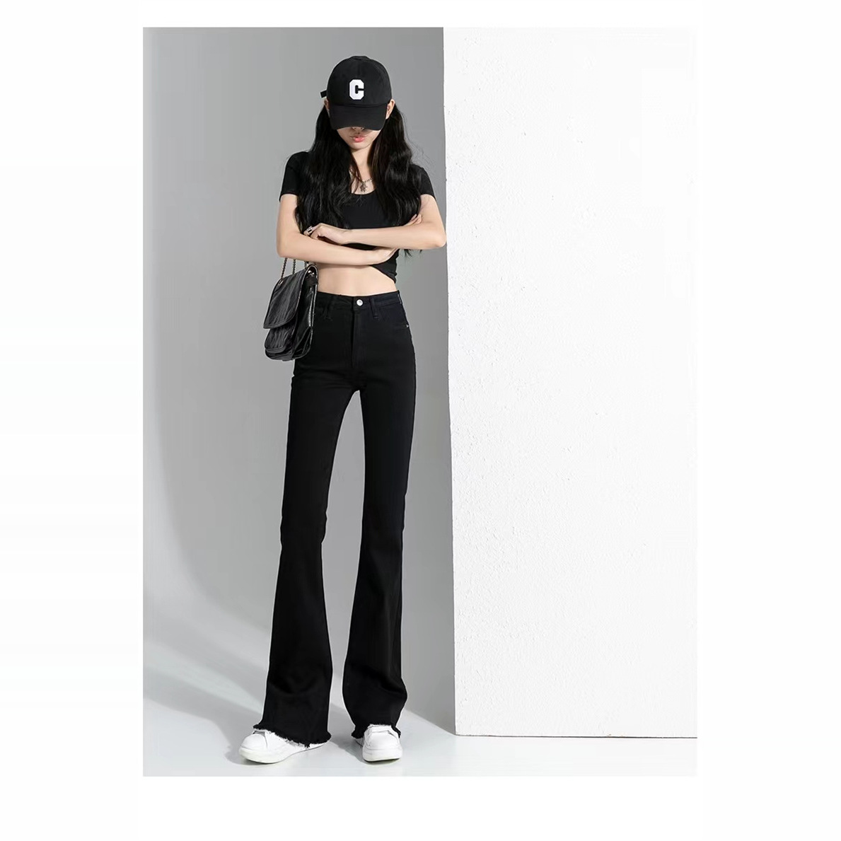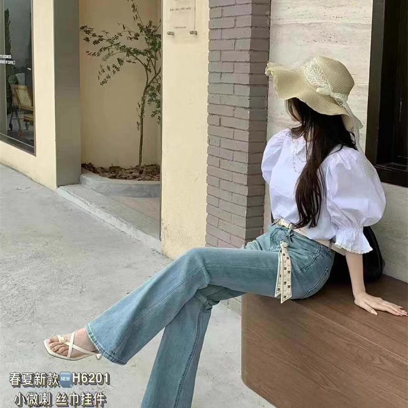 蓝色微喇牛仔裤女2025春秋设计感毛边高腰修身显瘦喇叭裤拖地长裤