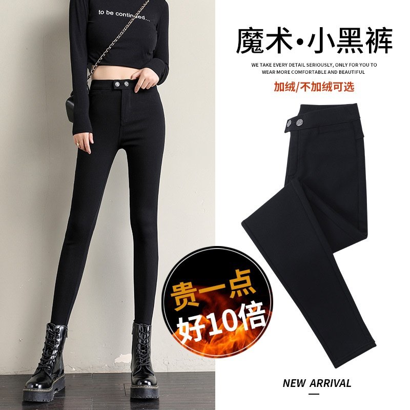 黑色魔术裤2025爆款打底裤女外穿高腰弹力紧身小脚加绒加厚小黑裤