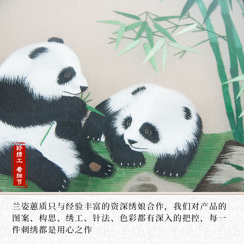 苏绣手工刺绣熊猫刺绣双面绣台屏