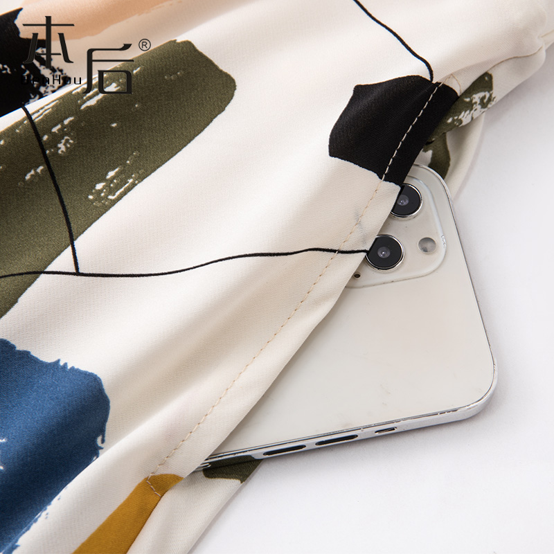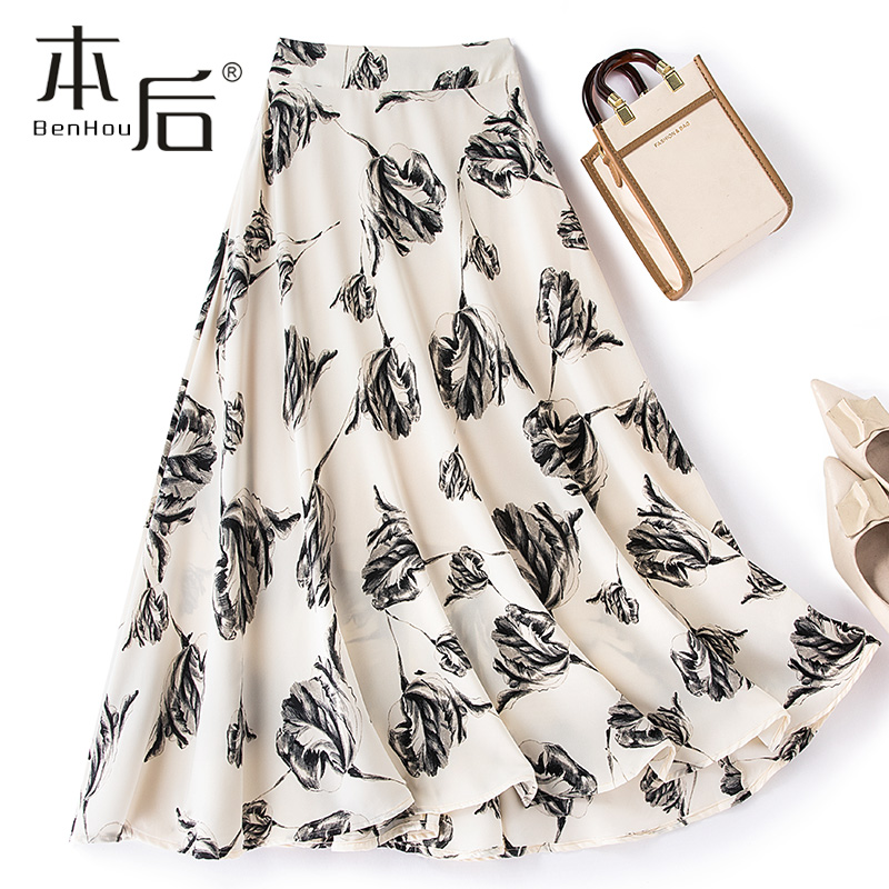 2222 口袋涂鸦碎花半身裙春秋女中长款春新款大摆垂坠雪纺a字裙