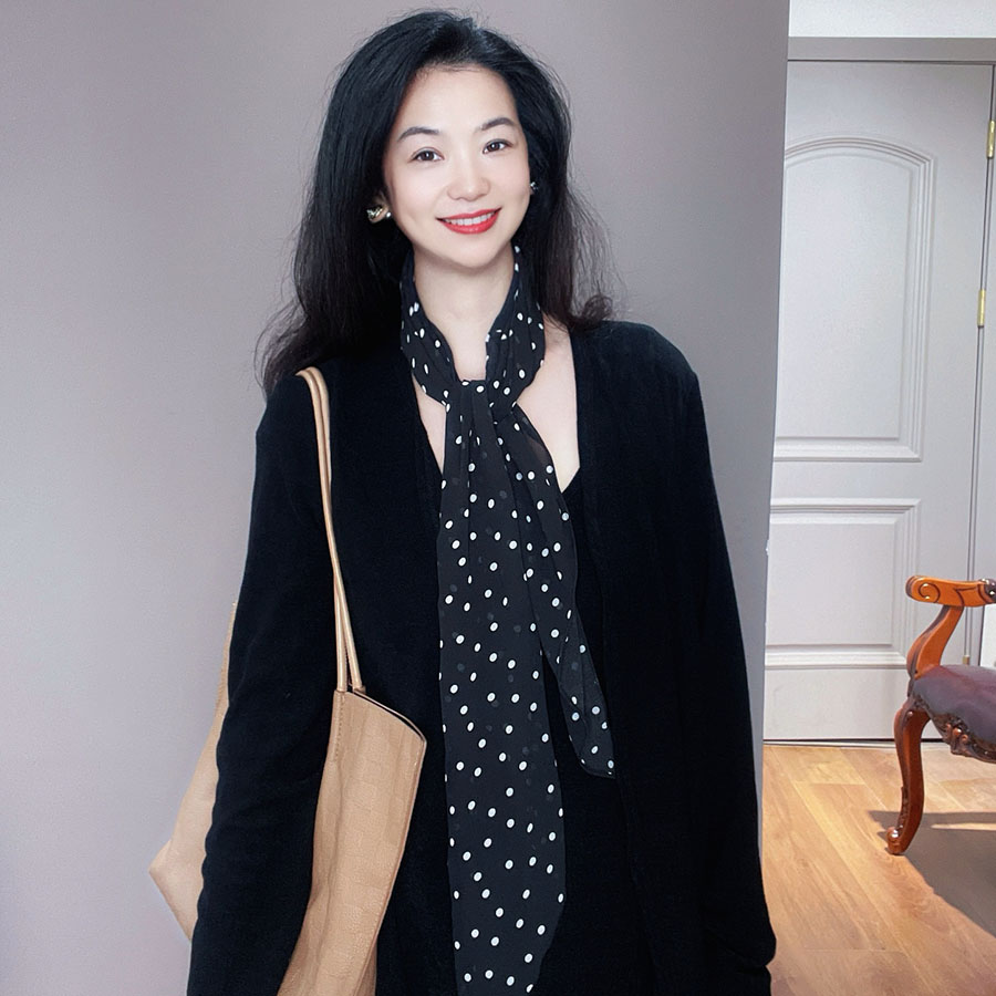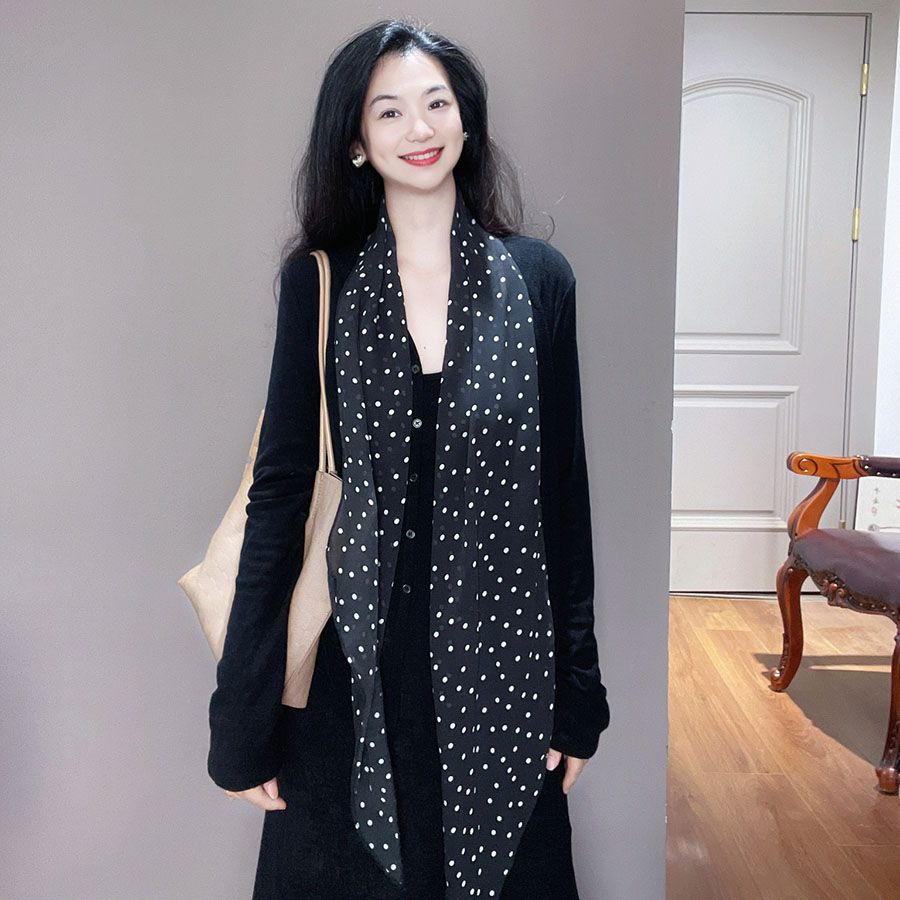 黑色波点丝巾女菱形长条高级氛围感港风装饰春秋薄款英伦风小丝巾