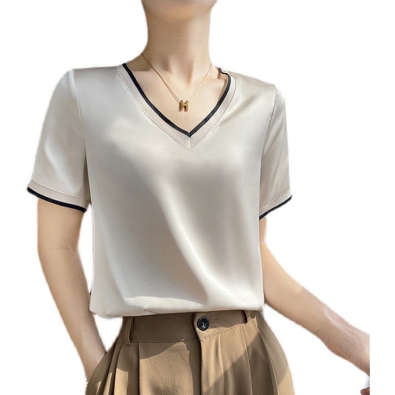 夏季高端真丝雪纺衫蕾丝短袖t恤女2025年新款短款宽松显瘦白上衣1