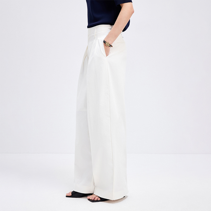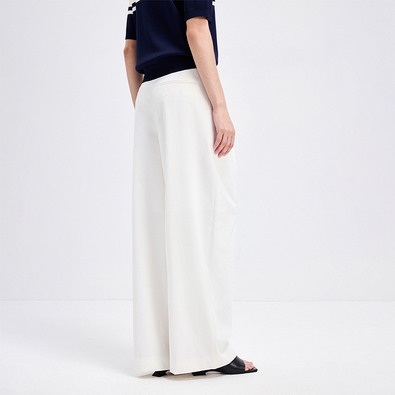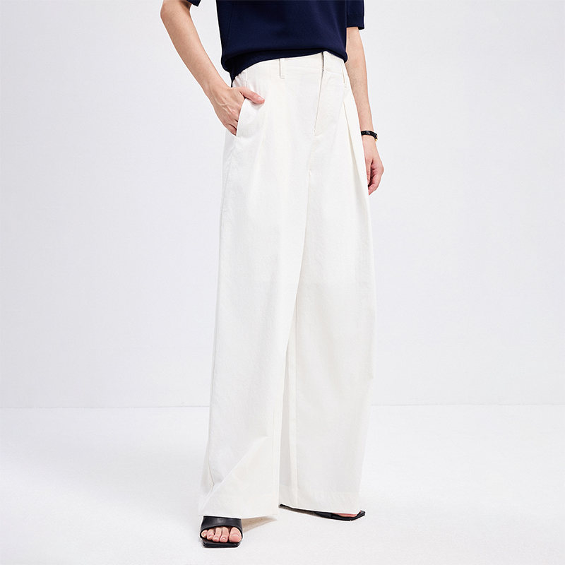 Navigare意大利小帆船春季白色休闲裤女士新款宽松阔腿裤百搭裤子