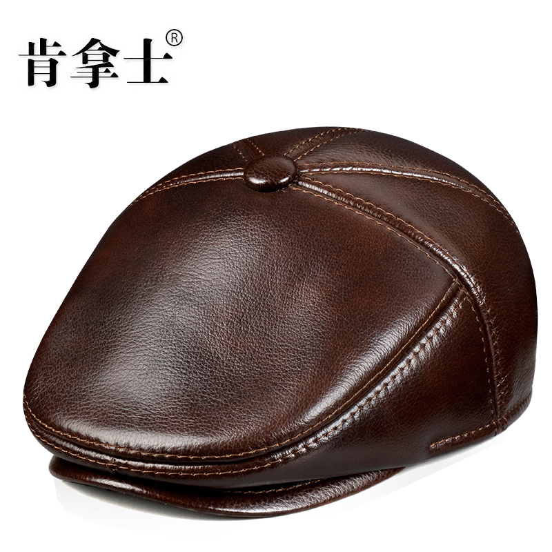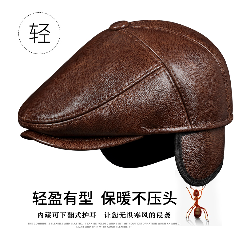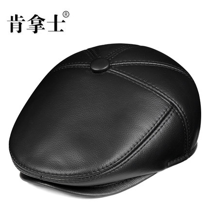 中老年人真皮帽子男秋冬天加绒保暖爸爸爷爷老头帽前进鸭舌老人帽