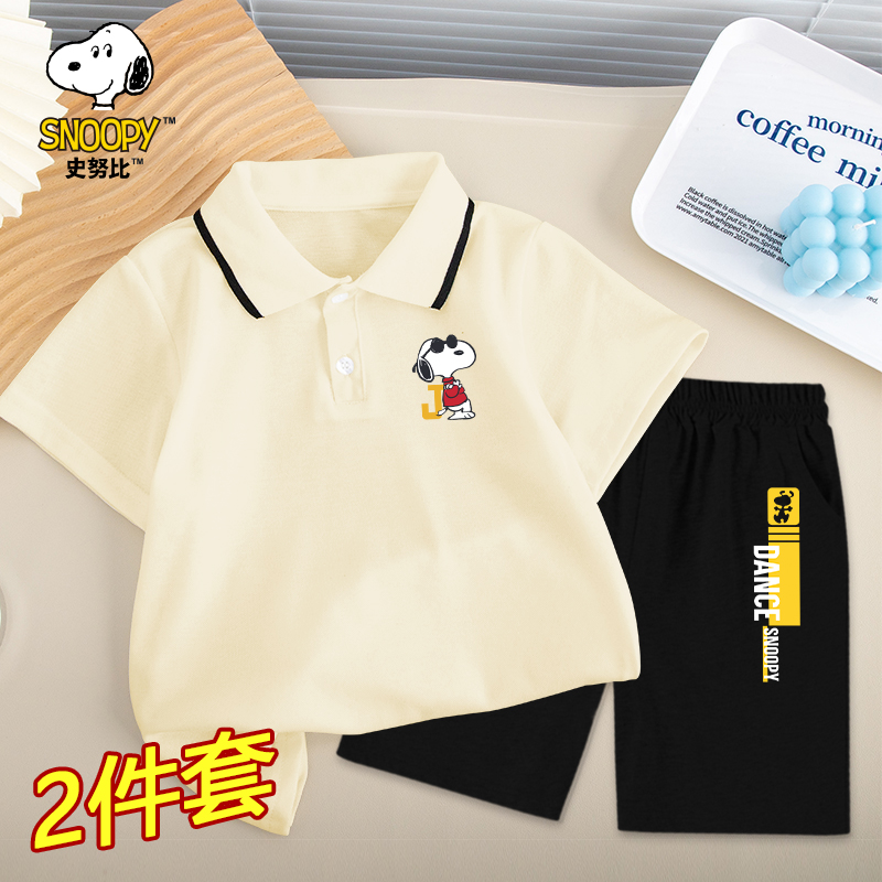 史努比童装夏季休闲宽松翻领儿童T恤POLO衫短袖短裤运动两件套