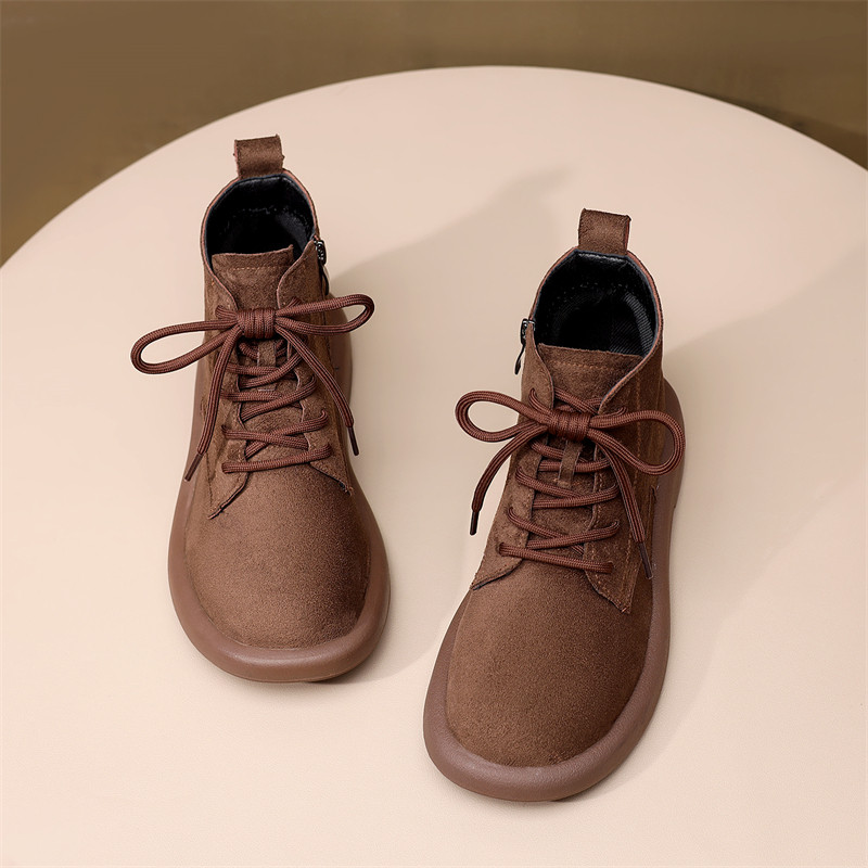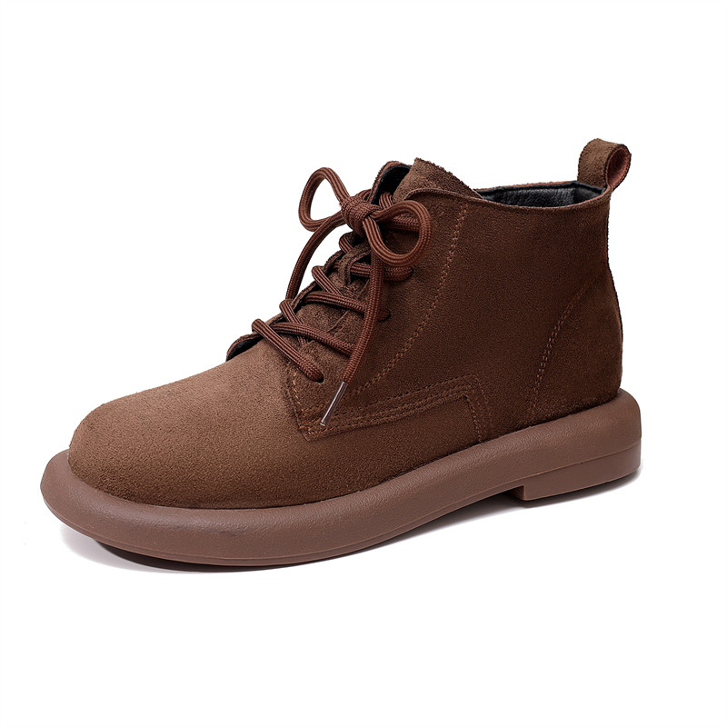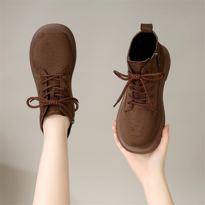 绒面复古马丁靴女英伦风低帮平底短靴秋冬加绒圆头裸靴防滑妈妈鞋