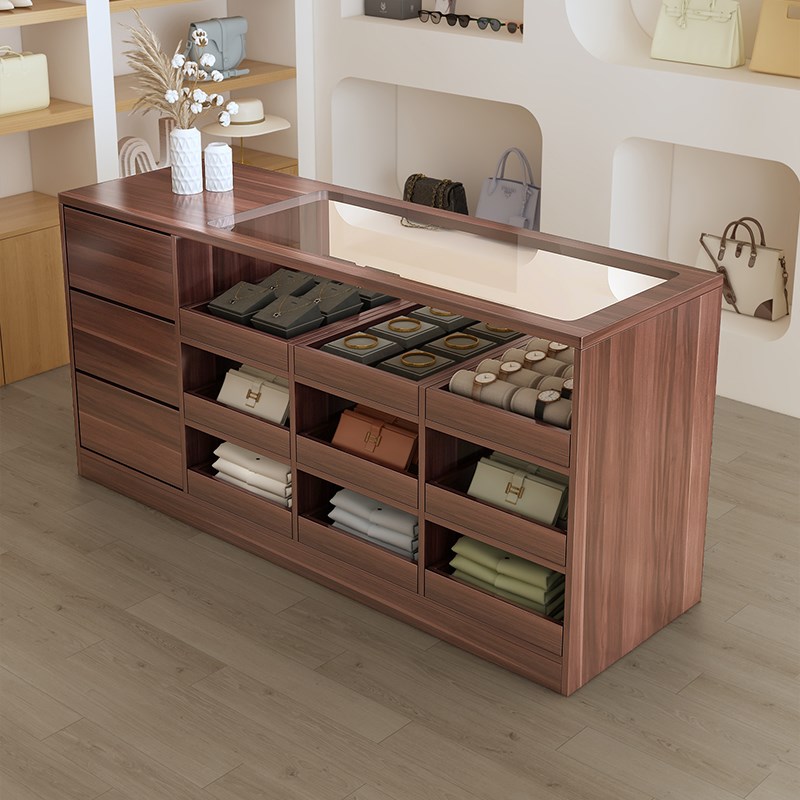 服装店中岛柜收银台柜台带玻璃摆件饰品陈列柜流水台展示台吧台桌